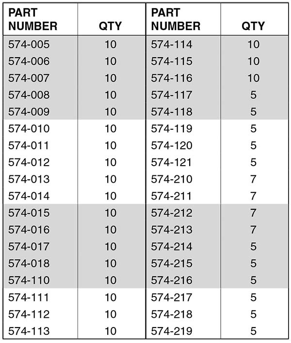 This 293 piece kit contains 36 of the most popular size "Parback®" Style Dished Cross Section back-up rings. Molded of 90A Durometer Buna-N rubber, they stretch for installation and return quickly to their original size. SIZES CORRESPOND TO O-RING NUMBERS. Your shop and service truck should not be without this handy kit.