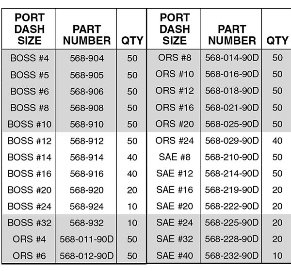 This 1000 piece assortment contains 1/16" CS, 1/8" CS and Boss 90A Durometer NBR o-rings in 26 of the most popular fitting sizes, individually separated inside of a sturdy steel case.