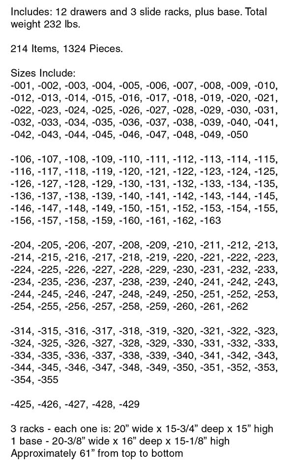 1324 PCS x 214 SIZES (W/METAL CABINET)
