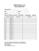 H&D Fax In Order Form